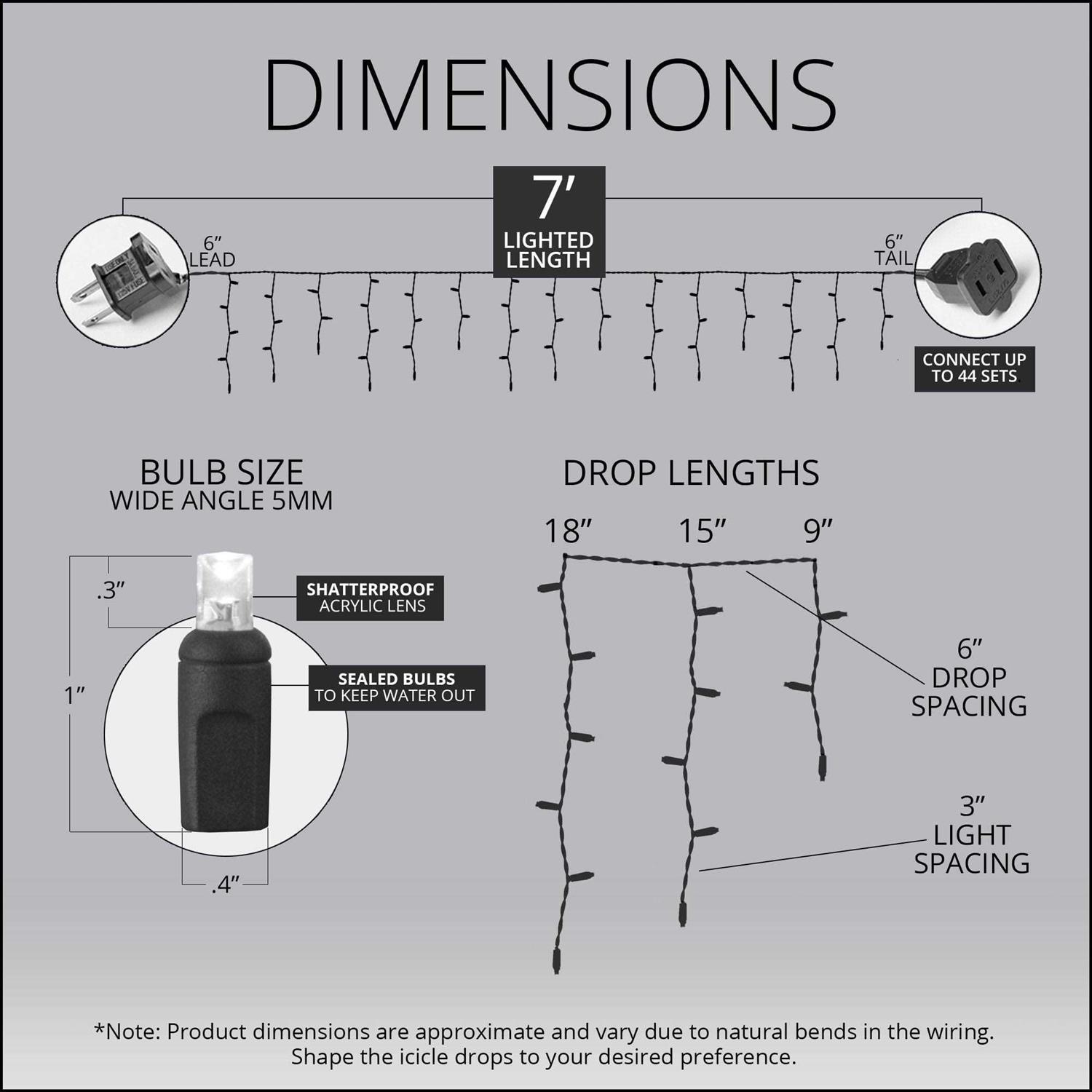Wintergreen Lighting 70 Light Christmas LED Icicle Lights, Warm White