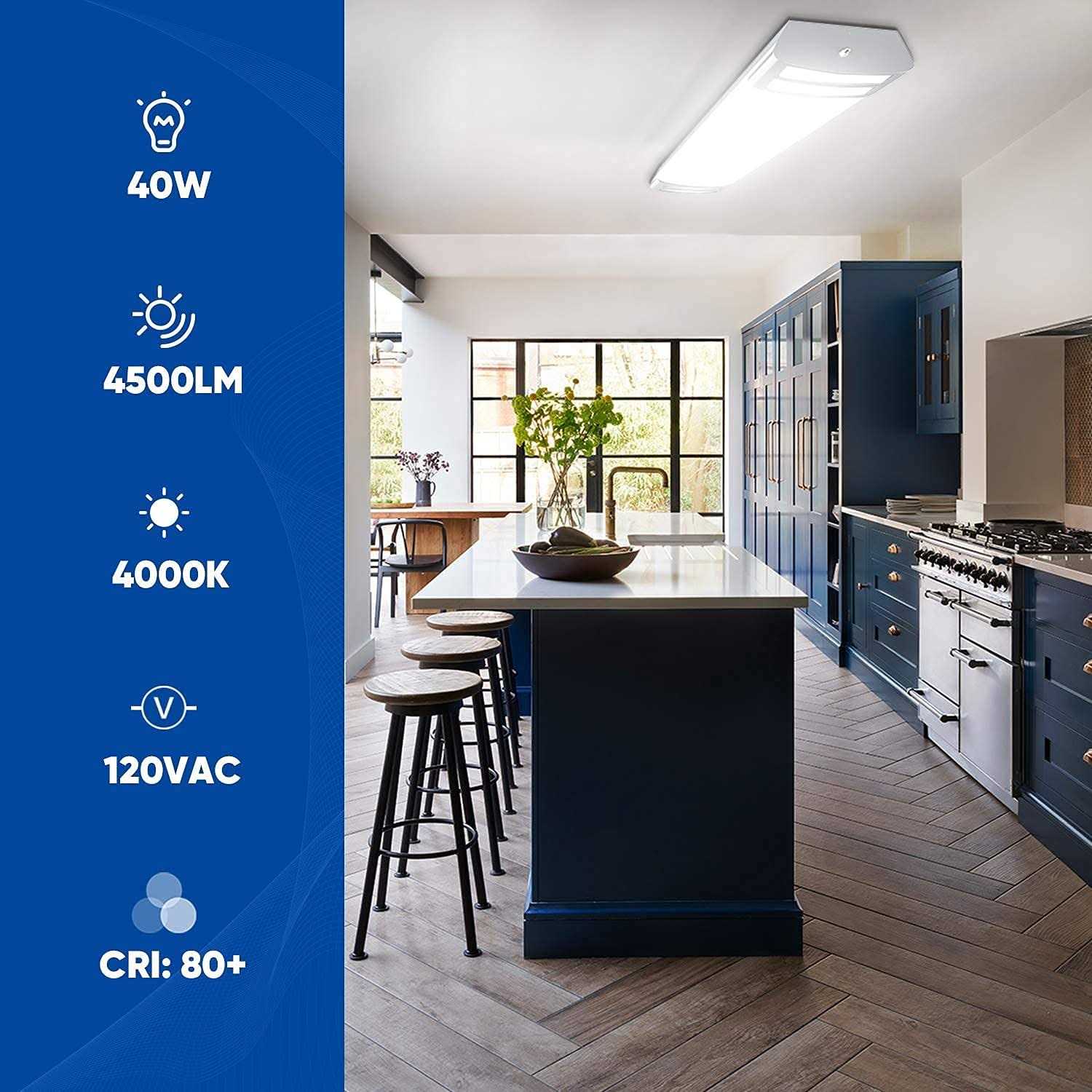 AntLux 4ft LED Flush Mount Linear Lights 40W 4500Lm Kitchen Light Fixtures, 4000K, 4 Foot LED Kitchen Ceiling Light Fixtures for