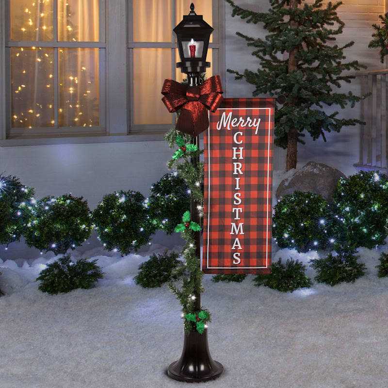 An illuminated symbol of holiday cheer. With its warm white LED lights and festive “Merry Christmas” banner, this Pre-Lit Christmas Lamp Post effortlessly brings Christmas charm to any space. Designed to capture the magic of the holiday season, this lamp post with its warm light creates a cozy and inviting ambiance, making it a perfect addition to your indoor or outdoor decorations. Warm white LED lights create a magical glow. Features a festive “Merry Christmas” sentiment banner for added holiday cheer. Ideal for indoor or covered outdoor use, making it versatile for your decorating needs. Made of plastic. Measures 72in. L × 25in. W × 11.2in. H.