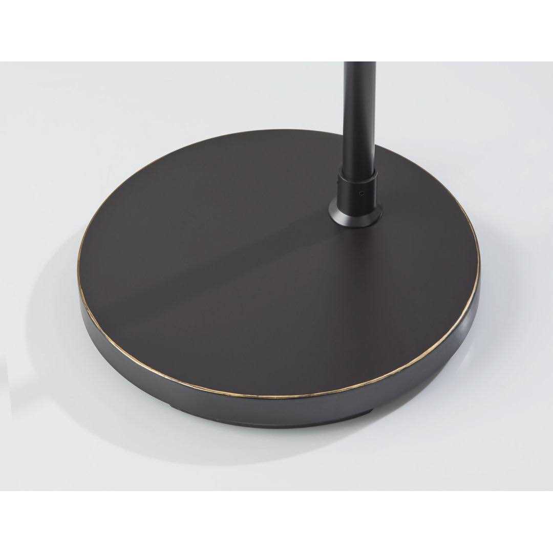 Three Posts This arc floor lamp helps to illuminate nearly any corner in your home. It’s made from metal and features a circular base with a slim body and arched top arm to create a slight semi circle silhouette. Hanging off the arm is a beige fabric drum shade that diffuses the light from the 150W bulb not included that sits inside. This lamp is operated by a rotary switch that’s located right on the socket above the shade.