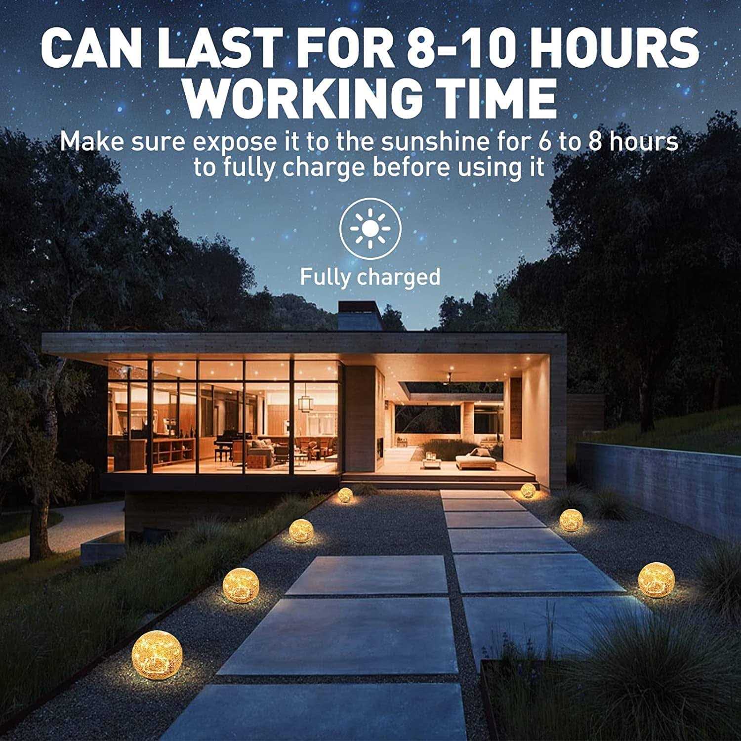 Bannad Garden Solar Lights Cracked Glass Ball Waterproof Warm White LED for Outdoor Decor Decorations Pathway Patio Yard Lawn