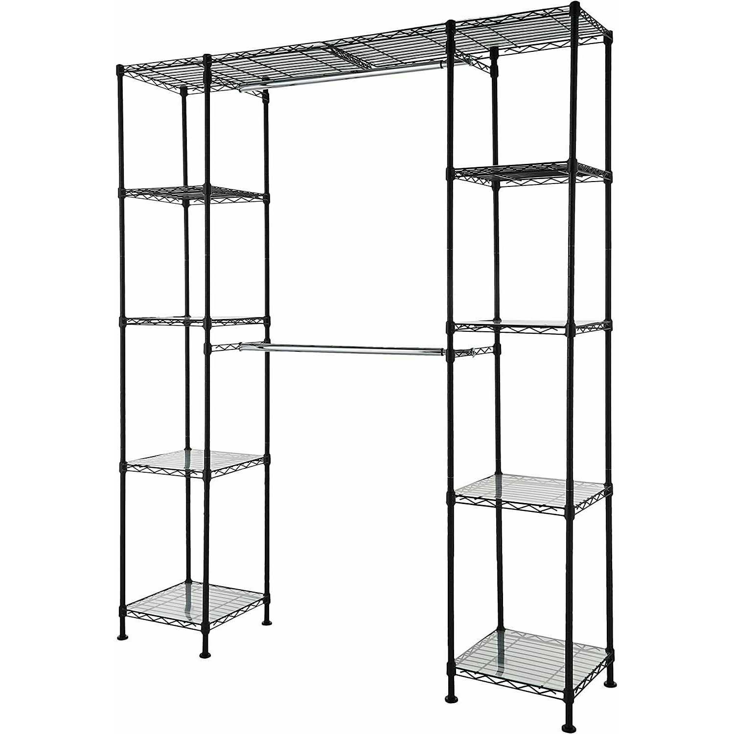 Basics Expandable Metal Hanging Storage Organizer Rack Wardrobe with Shelves, 14 inch-63 inch x 58 inch-72 inch, Black