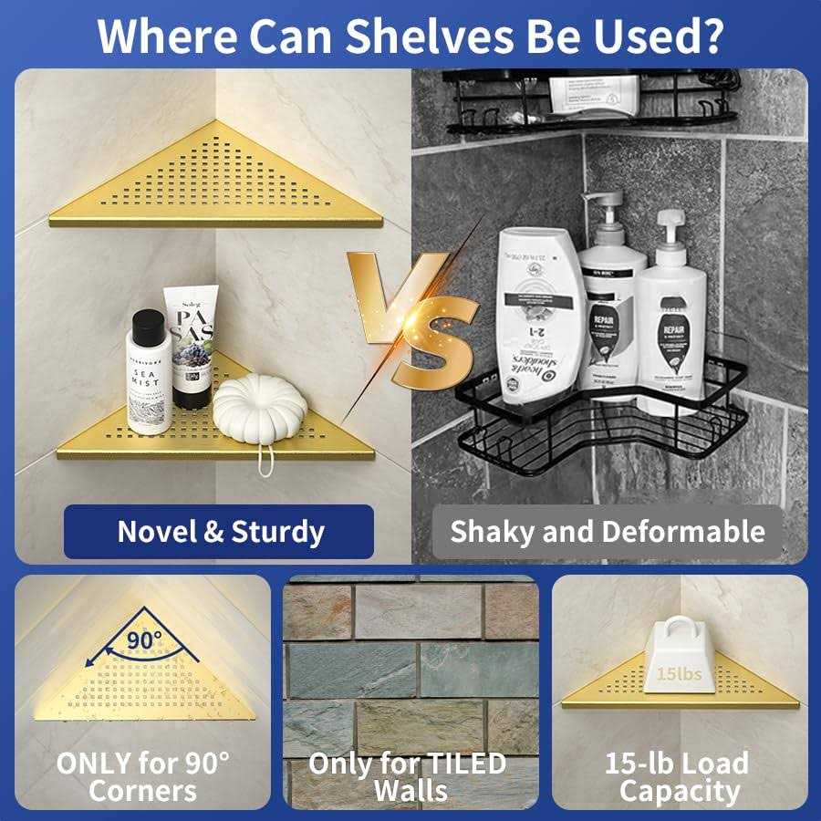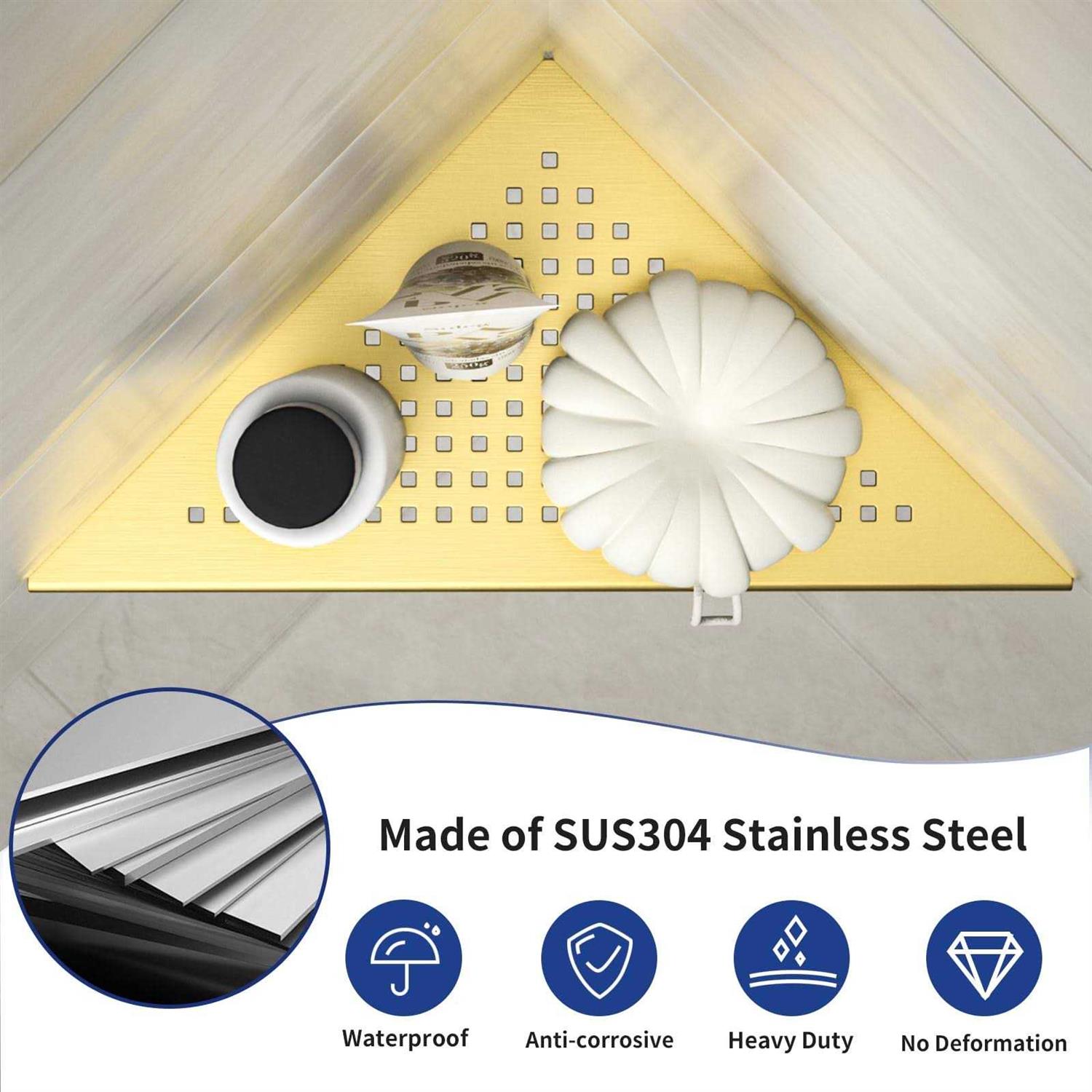 Stainless Steel 【SUS304 Durable & Heavy Duty】Our bathroom shelves are made of ASTM standard 304 stainless steel, which can protect against corrosion, scratches and rust for long-lasting durability. With 1.5 mm thickness can hold up to 15 pounds per shelf. These shelves are designed for TILED WALL. No drilling or adhesive needed. 【Two ways to install】Side A, stainless surface with modern design makes your bathroom elegant. Smooth surface will not scratch or damage your items. Side B, corner shelf with rail can protect your goods from falling down. Choose one surface you prefer when installation. No drilling and damage to the wall. 【Space Saving & Modern Style】Our corner floating shelves are designed for organizing your bathroom and kitchen. They are ideal for holding your shampoo, body wash, cream, razor, seasonings and more. Please note that shelves are ONLY for 90°corners, it is a great choice for both narrow and broad bathroom spaces. 【Rapid Drainage】No water pooling. Slots on corner shelf can make water drain fast and keep your bath products on the shower shelf dry and clean. It can also be used as a footrest when shaving. Matching Bernkot shower drain grates and shower niches are also available. 【Low Maintenance】Bernkot stainless steel corner shelf doesn’t require any special maintenance or care. Clean shelves periodically using neutral cleaning agents. Bernkot recessed shower shelf is made of 304 stainless steel, which could work for a long time.