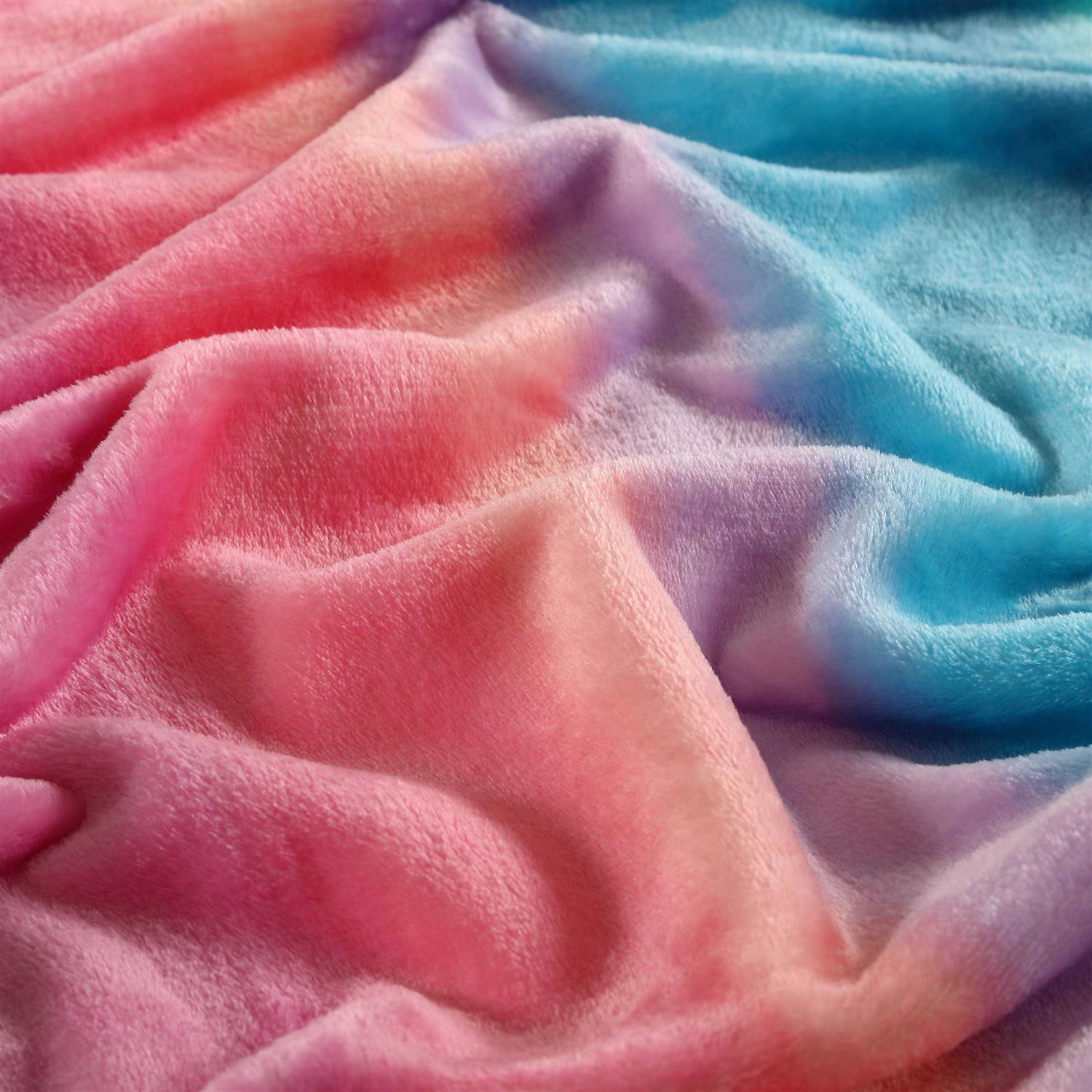 Cozy up with BETSEY JOHNSON’s ombre blanket. Made using 100% polyester, this ultra soft plush fleece blanket is designed for softness. The pattern highlights cotton candy pastel hues of pink, purple and blue forming a visibly pleasing ombre. This blanket is not only lightweight but also provides extra warmth to keep your body cozy whether snuggled up on the couch or adding that extra layer on your bed. Includes one blanket, other sizes available in twin, full/queen and king- all sold separately. All blankets include a BETSEY JOHNSON logo patch for that extra design element. Blankets are all easy to care for and machine washable for a long lasting item.