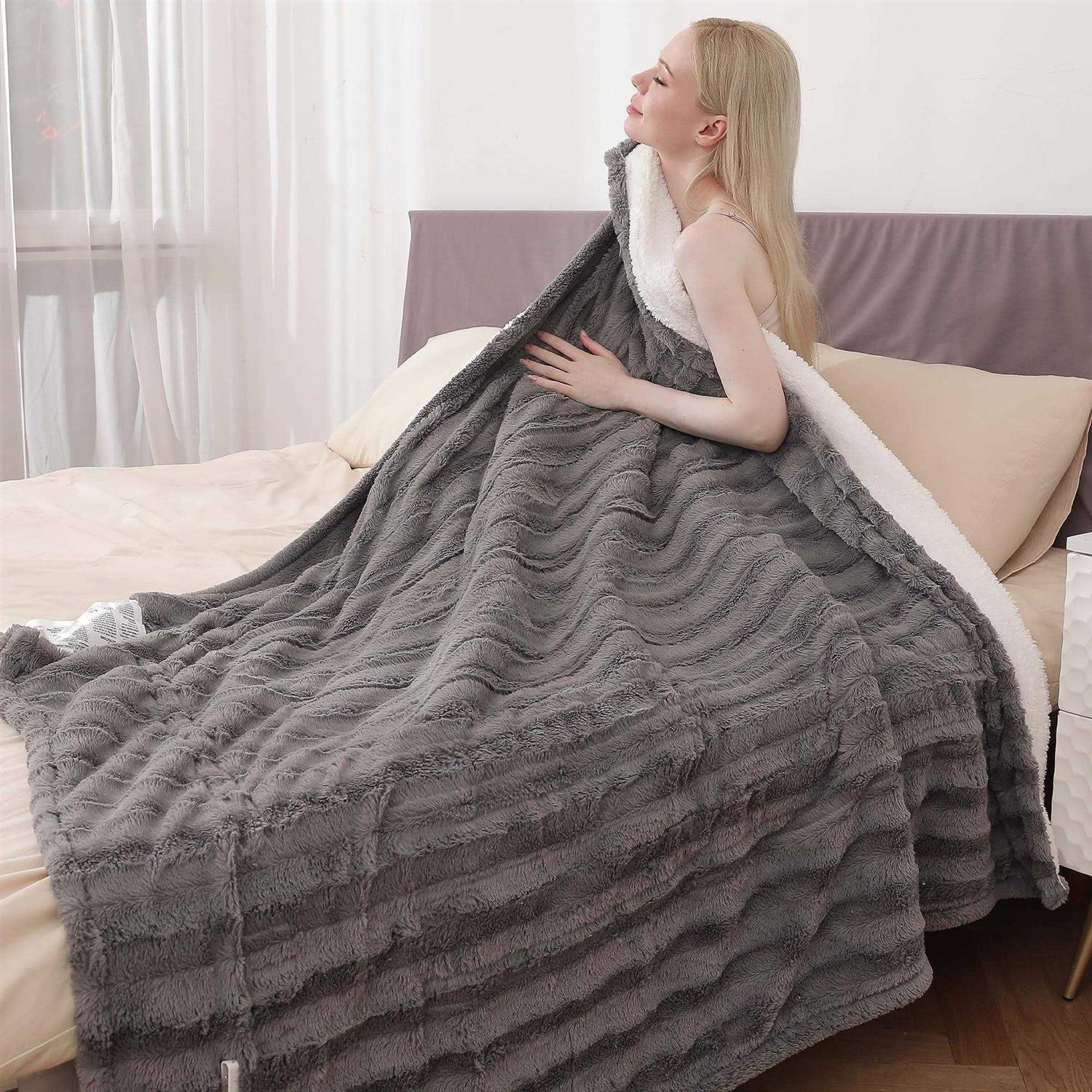Bilicolor Heated Blanket Electric Throw Luxury Faux Fur Fast Sherpa Heating Blanket 50 x 60 Fuzzy Blanket Etl Certification with 5 Heating Levels