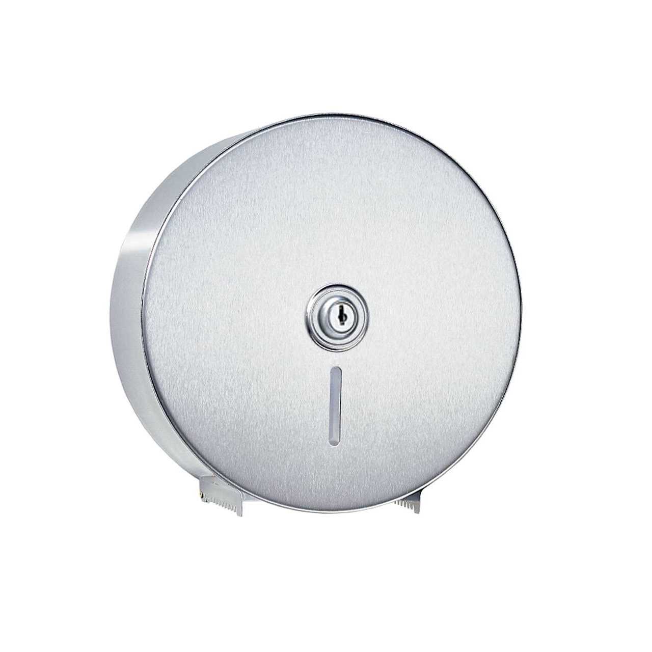 Bobrick B-2890 The B-2890 is a Surface Mounted Single Jumbo-Roll Toilet Tissue Dispenser that is built to accommodate a 10” roll. It is the perfect solution for high-traffic areas. You can use the slot window in the front panel to monitor how much paper is left and keep up with refills so that guests always have access to paper. The entire unit has been designed with easy refills in mind. The front panel unlocks and swings down so that you can quickly add a new roll without any hassle. It is constructed from stainless steel and comes with a stylish satin finish. Installation is easy and the dispenser can be attached to any partition material using the right screws and anchors. Spend less time worrying about refills and bathroom maintenance while still providing plenty of tissue with this durable and affordably jumbo dispenser from Bobrick.