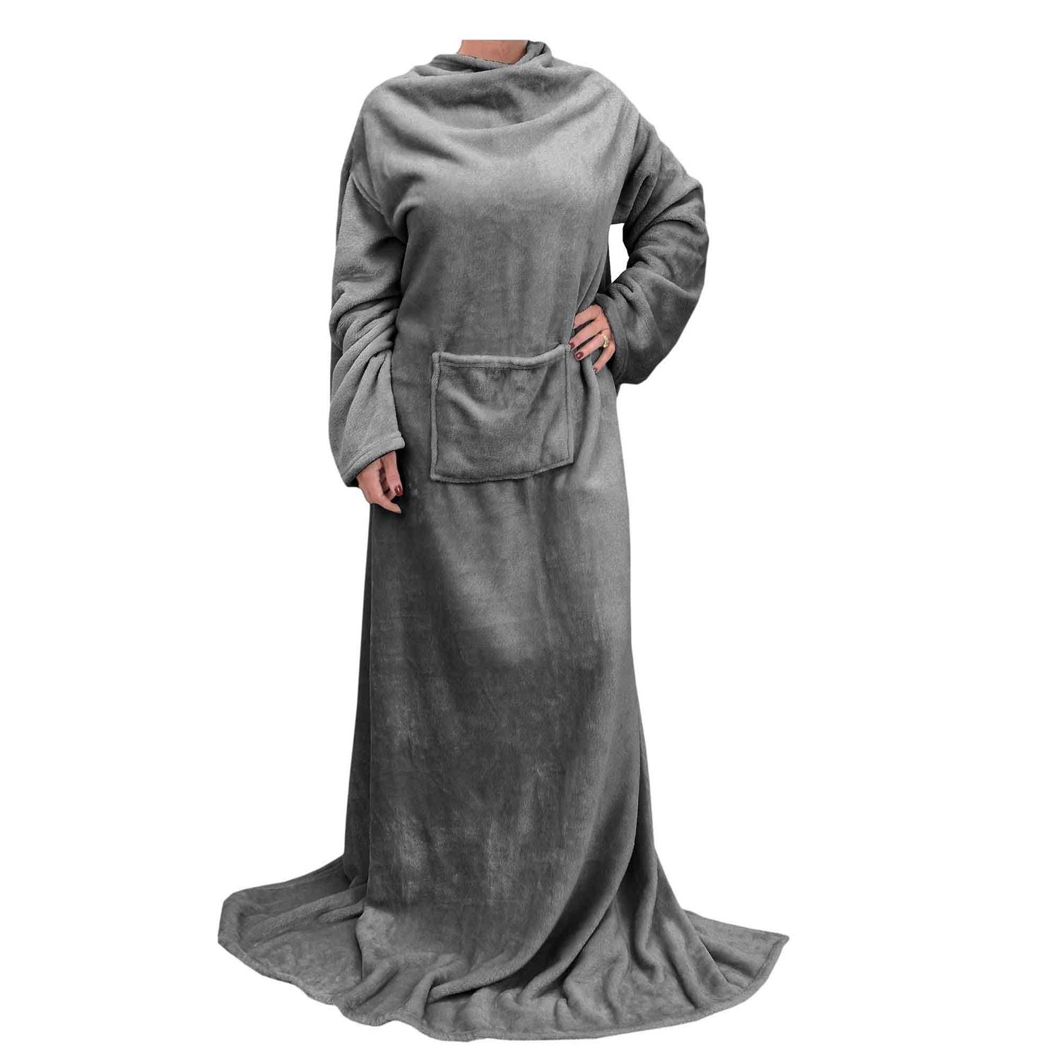 Catalonia Wearable Fleece Blanket with Sleeves and Foot Pockets for Adult Women Men