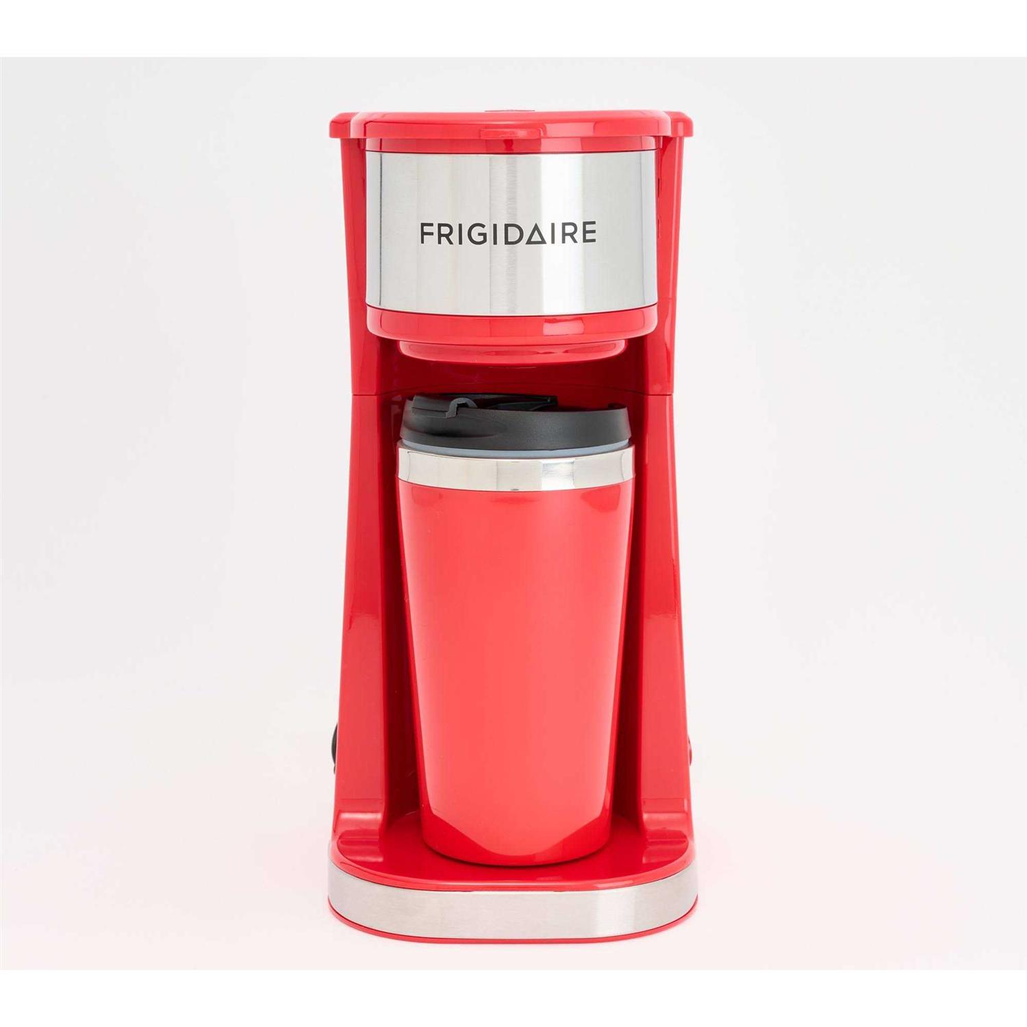 Enjoy fresh, hot coffee with the push of a button with this single-cup coffee maker. Take it to go with the included stainless steel travel mug that fits in most cup holders. From Frigidaire.