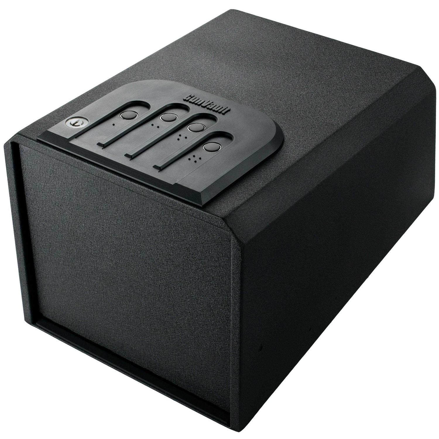 You’ll have rapid access to as many as four handguns with this GV2050-19 MultiVault Gun Safe from GunVault. Unlike the MultiVault standard, which requires you to manually open the safe and reach in to access its contents, the door of the GV2050-19 opens automatically, and a slide-out drawer delivers unobstructed access to your sidearms. A red LED light illuminates the inside of the vault. Like the original, the 16-gauge steel GV2050-19 uses a programmable access code with a “No-Eyes” design that allows you to open the safe even when you can’t see the keypad. A backup override key provides access in the event of forgotten keypad code or battery failure. The safe is pre-drilled with holes for mounting on a wall or in a closet.