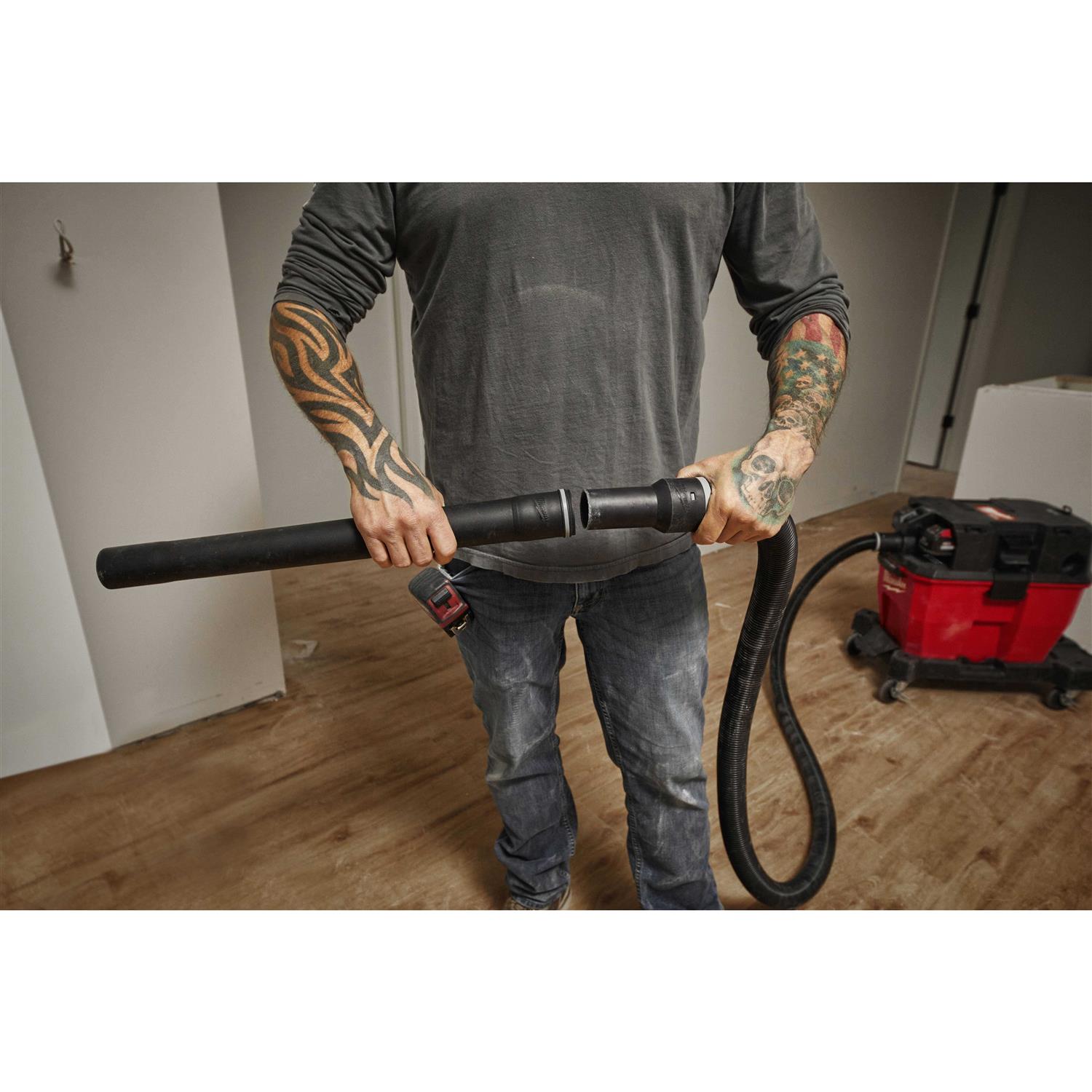 Our 1-7/8 in x 9 ft flexible hose delivers unmatched durability and flexibility to survive the jobsite. Its two-part design allows for durable and crush-resistant construction to prevent tears that lead to downtime on the jobsite. The anti-static hose material helps prevent static buildup when cleaning fine particles. The high-performance swivel mechanism and hose material create more flexibility and ease of use during cleaning, preventing the hose from getting bound up or kinked while you move around. The dedicated custom rubber gasket improves airflow and performance when in use. This Milwaukee flexible vacuum hose has a gray color ring for quick identification of its 1-7/8 in Dia.