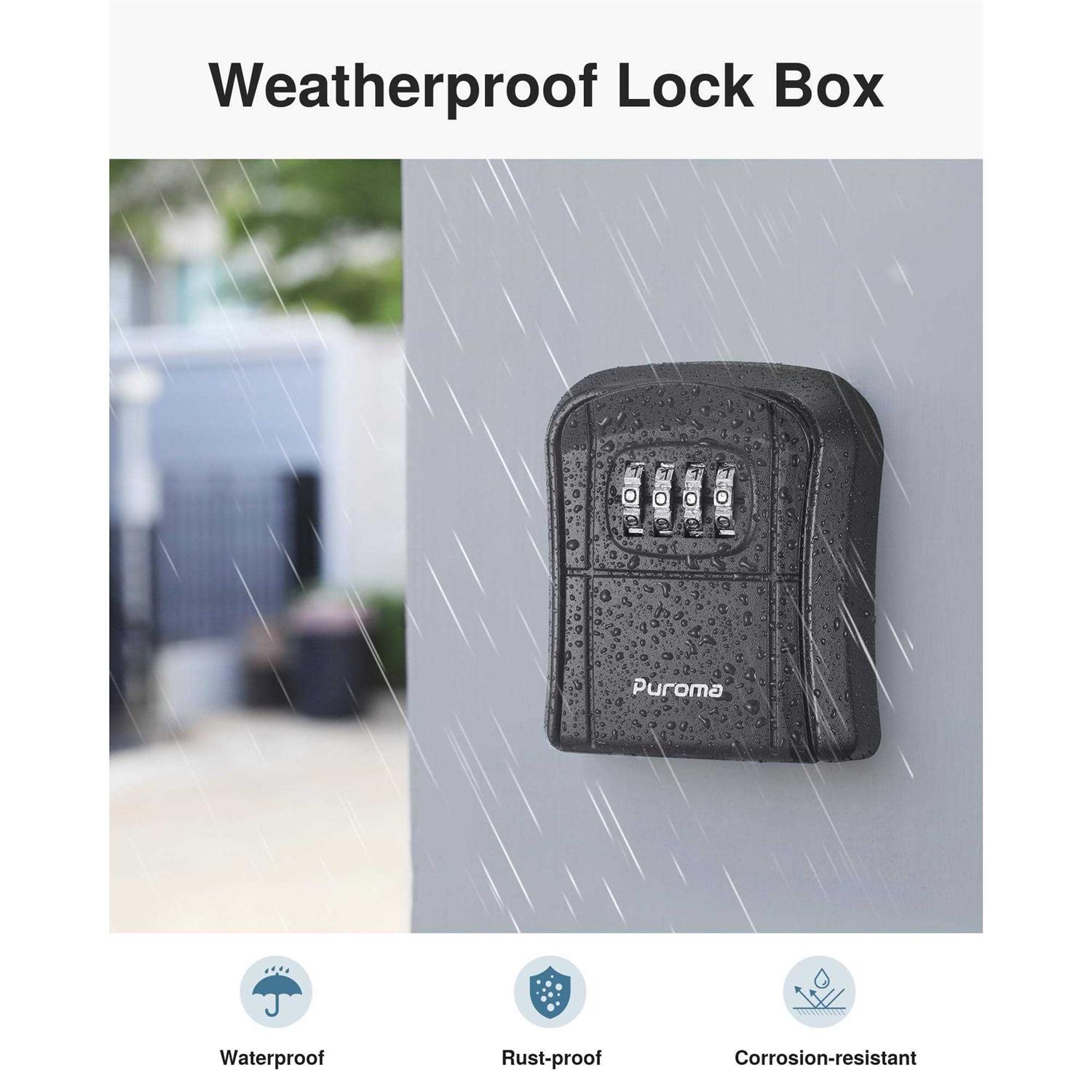 Puroma Key Lock Box Wall-Mounted Key Storage Box for House Keys, Resettable Code Safe Security Lock Box for Home, Office, Garage, Apartment Spare