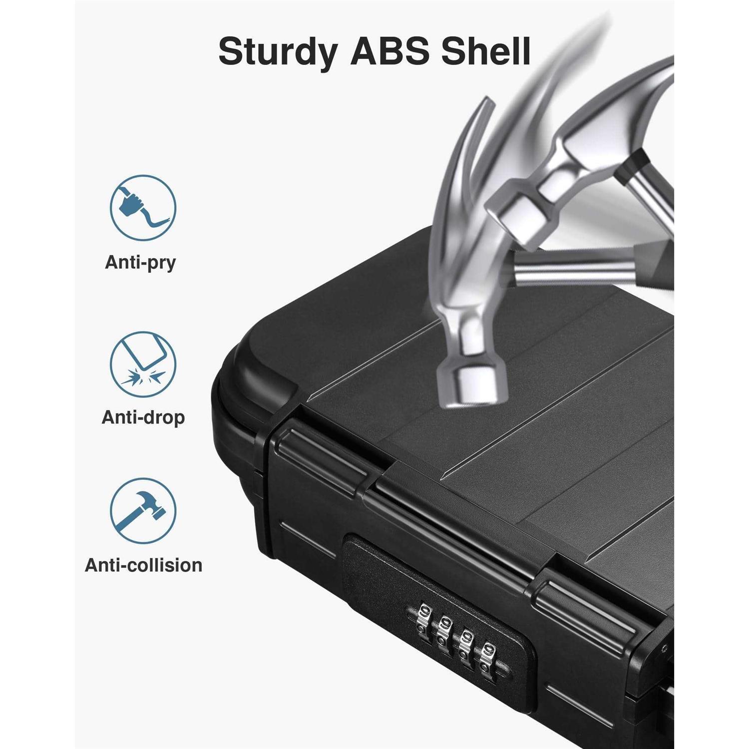 Puroma Portable Safe Box Travel Safe Box, Large Capacity Security Lockbox with Combination Code, Waterproof Key Lock Box with Removable Cable Handle