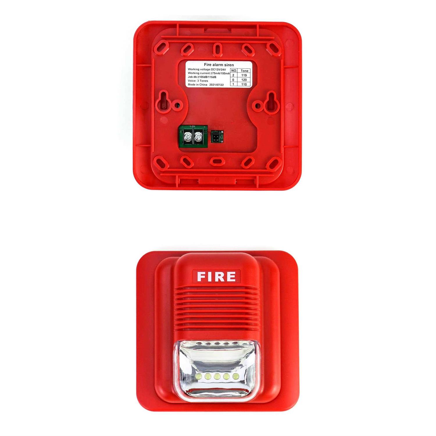 QWORK Fire Alarm, 2 Pack 12 / 24V DC Wired Sound and Light Fire Alarm Warning Strobe Siren Horn, Sound Alarm Security System Sensor