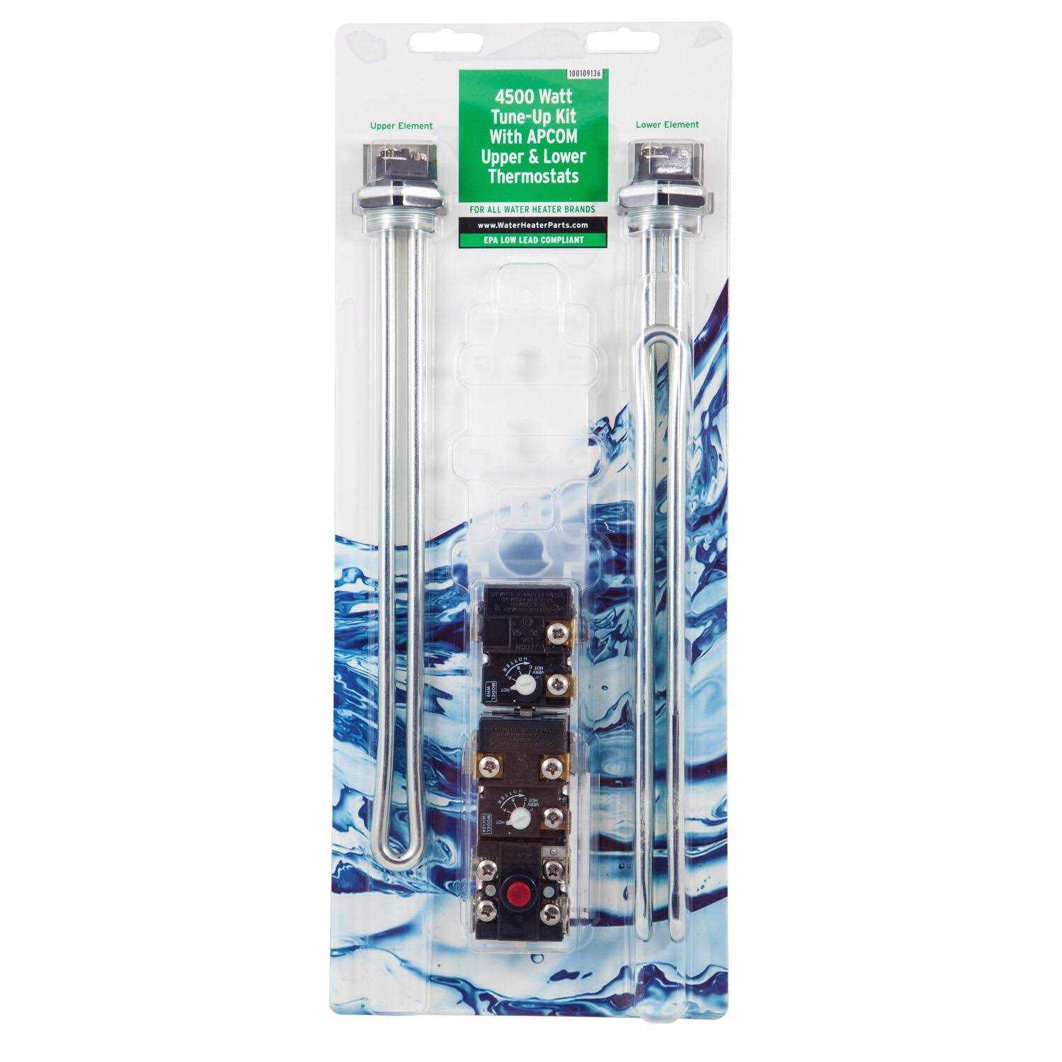Easy way to repair common electric water heater problems. Contains two heating elements and two thermostats. Prolongs the life of your electric water heater.